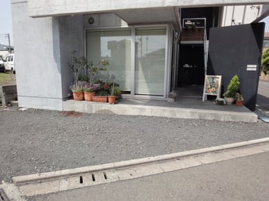 建物正面の砂利のスペースが駐車場です